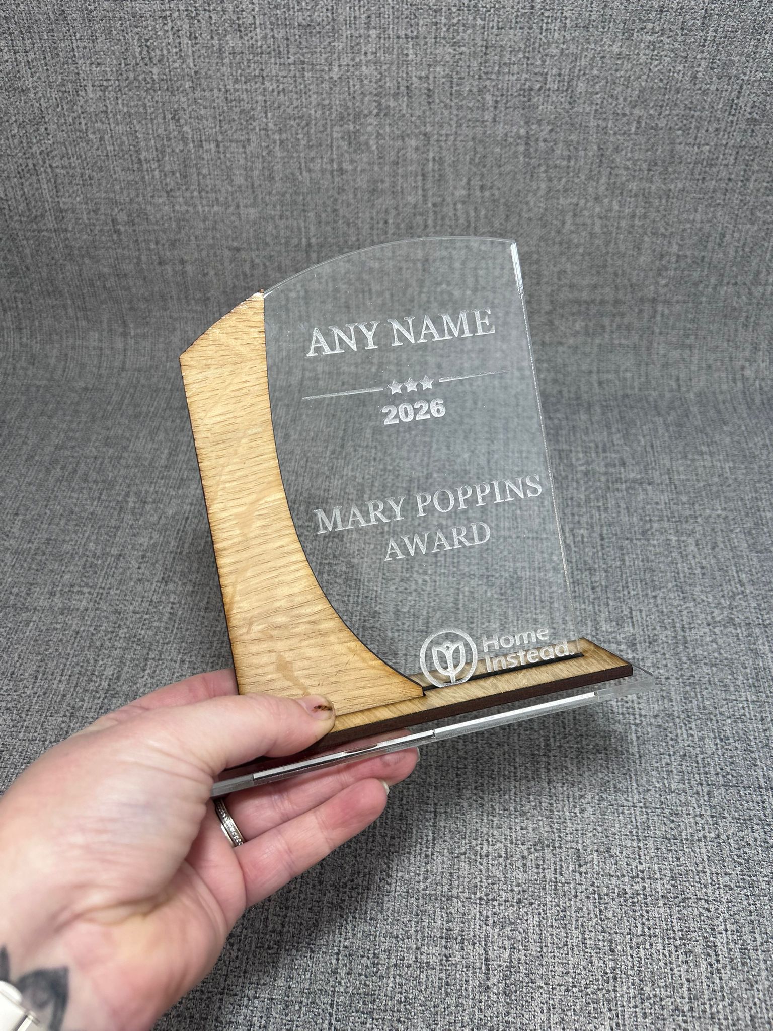 These Personalised Awards acrylic and oak, can have any wording and logo
